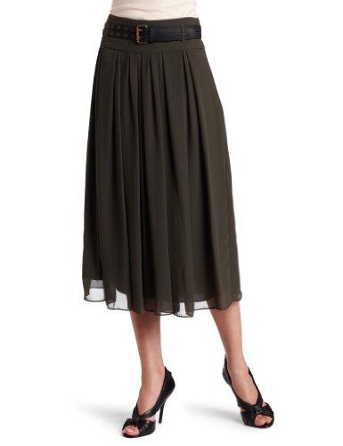 Vince Camuto Women's Belted Long Chiffon Skirt, Dark Olive, 14 Review